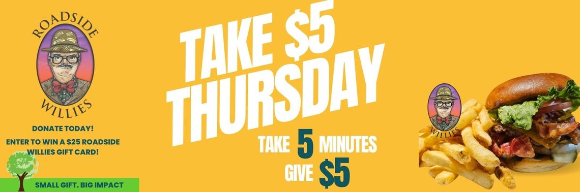 Every donation today is entered to win a $25 Roadside Willie’s Gift Card.